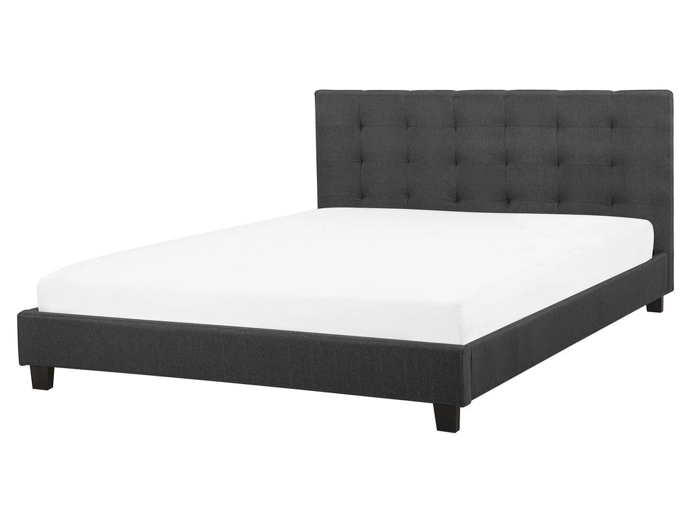 EU King Size Waterbed Dark Grey Fabric 5ft3 Upholstered Frame Buttoned Headrest Beliani