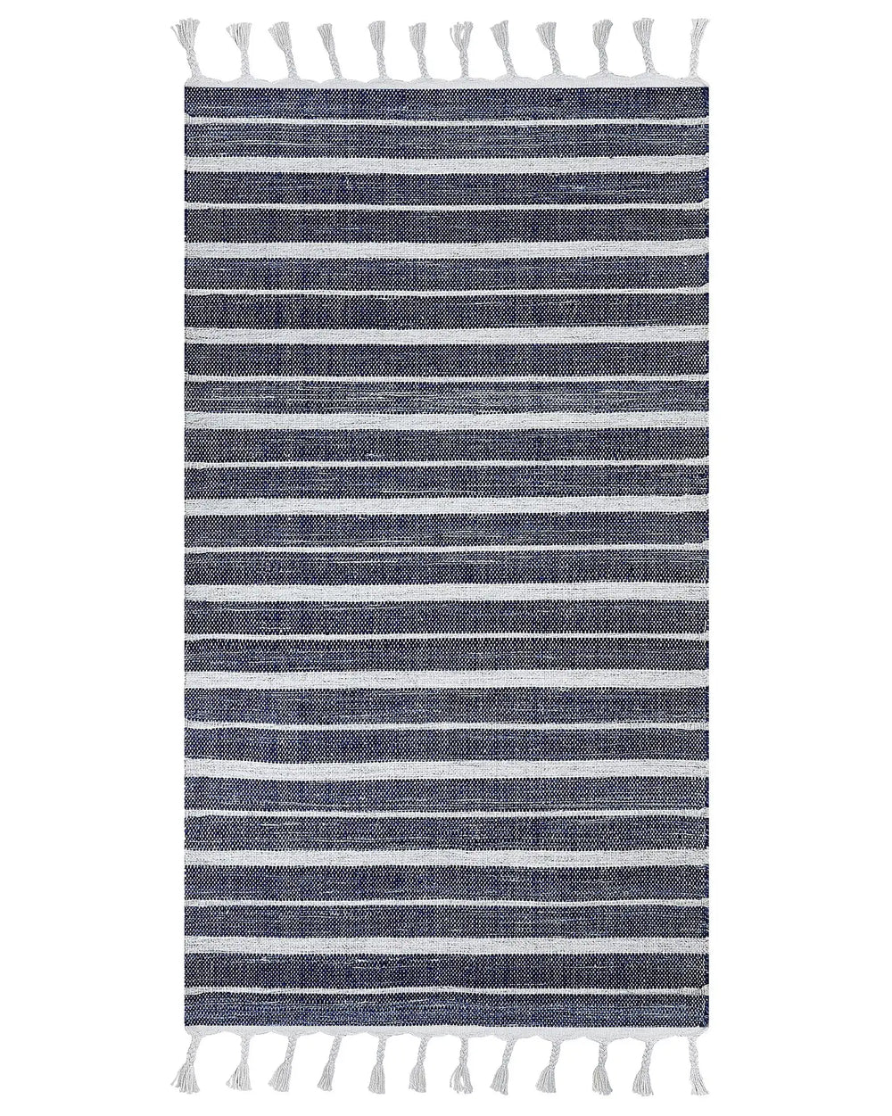 Area Rug Blue Fabric 80 x 150 cm Living Room Bedroom Stripe Pattern Modern Beliani is backordered and will ship as soon as it is back in stock.