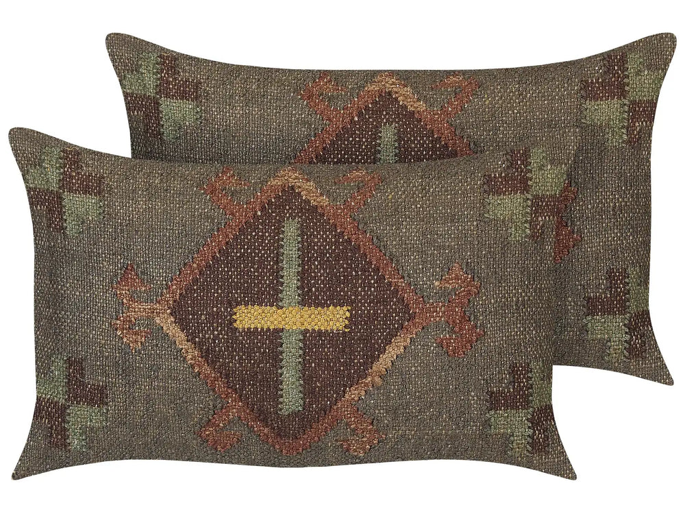 Scatter Cushions Set Green Jute and Wool 30 x 50 cm Oriental Pattern Kilim Style Faded Colurs Beliani is backordered and will ship as soon as it is back in stock.