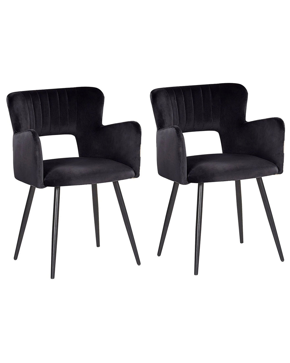Set of 2 Chairs Dining Chair Black Velvet with Armrests Cut-Out Backrest Black Metal Legs Beliani