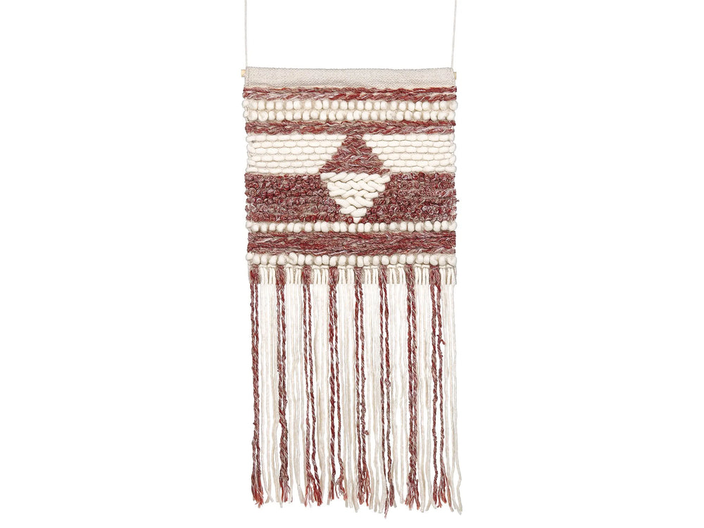 Wall Hanging Red Beige Wool Handwoven with Tassels Geometric Pattern Boho Style Living Room Bedroom Beliani is backordered and will ship as soon as it is back in stock.