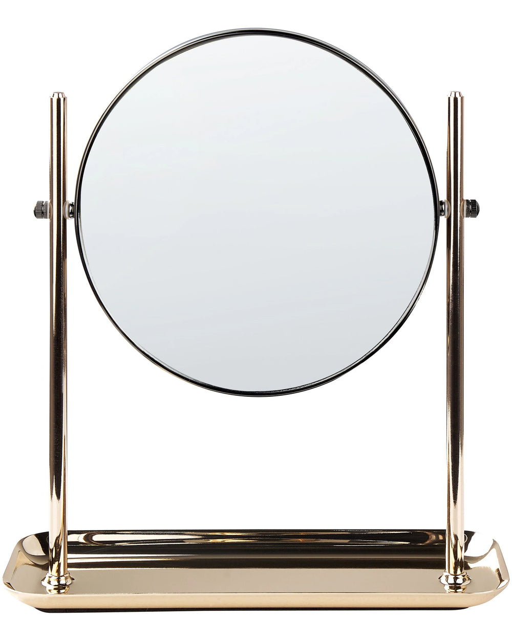 Makeup Mirror Gold Iron Metal Frame 20 cm with Tray 1x/3x Magnification Double Sided Cosmetic Desktop Beliani