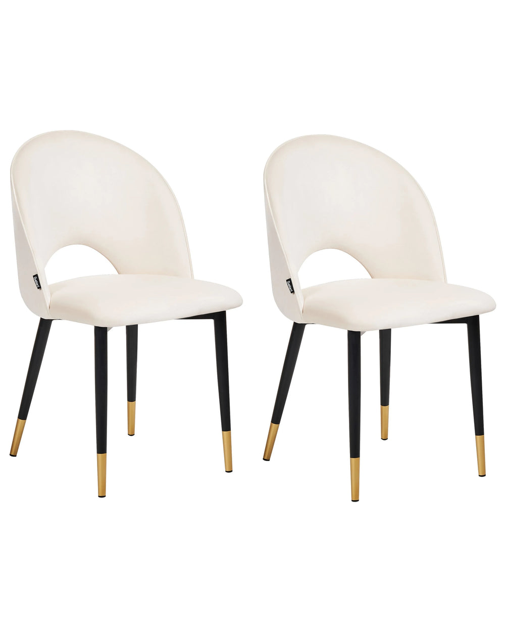 Set of 2 Dining Chairs Light Beige Velvet Upholstery Black Legs Retro Glamour Beliani
