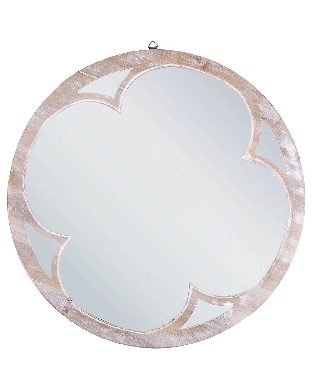 Wall Mirror Whitewash Light Wood Chinese Fir 60 Round Decorative Wall Mounted Accent Piece Beliani