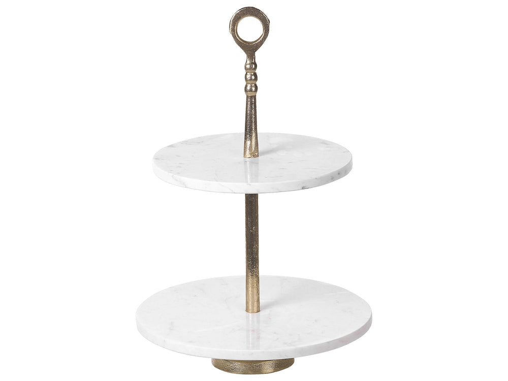 2-Tiered Dessert Plate Gold and White Aluminium and Marble Modern Glam Design Beliani