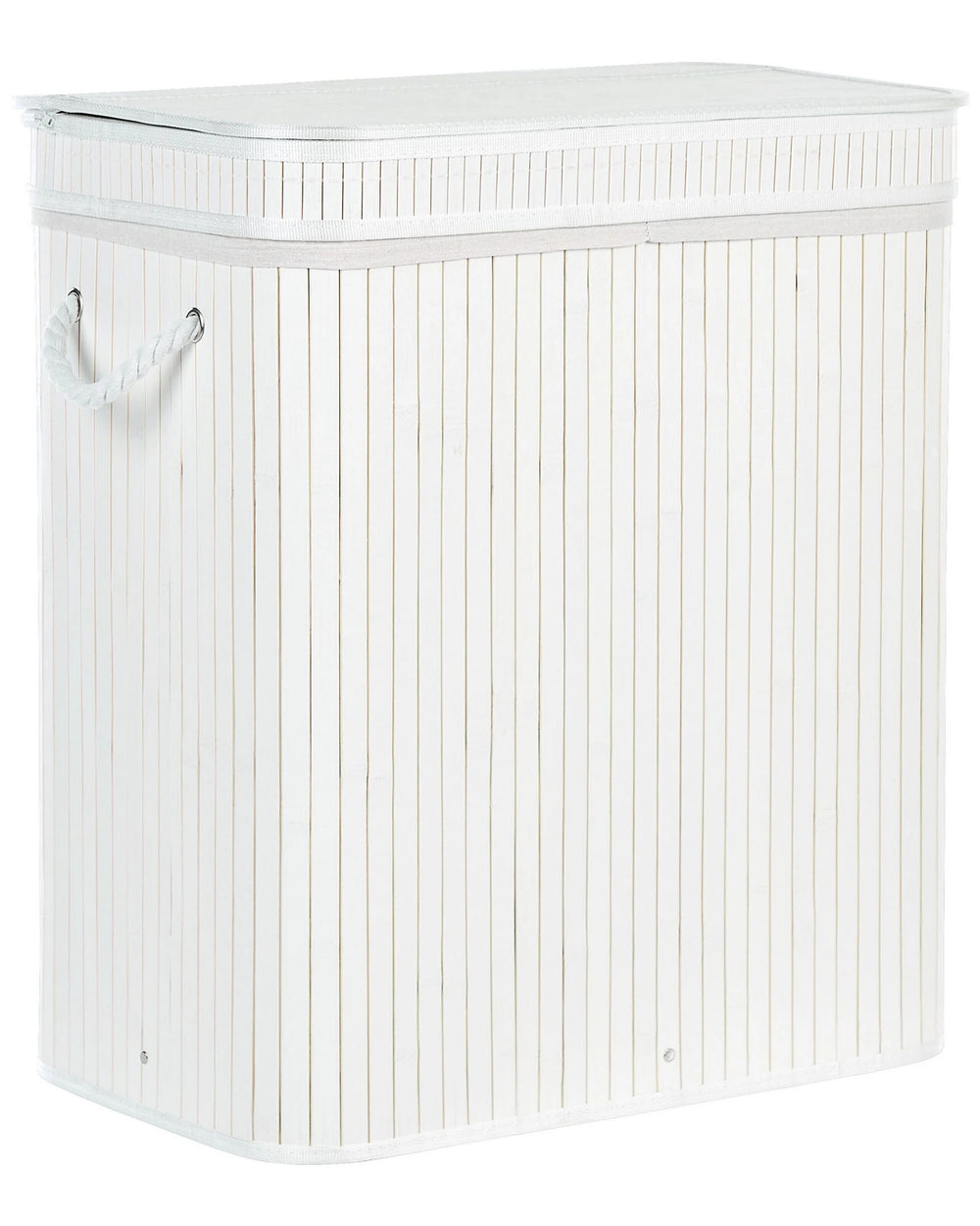Basket with Zippered Lid Grey Bamboo Wood Laundry Hamper 2-Compartments with Rope Handles Beliani