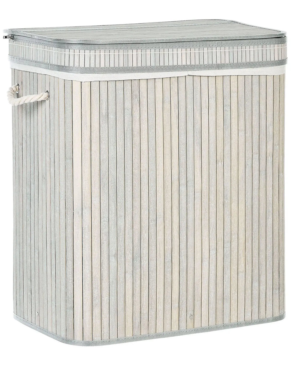 Basket with Zippered Lid Grey Bamboo Wood Laundry Hamper 2-Compartments with Rope Handles Beliani