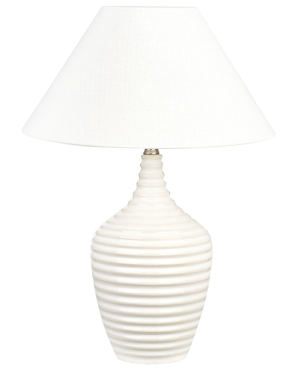Table Lamp Beige Ceramic Base Fabric Shade Ambient Lighting Bedside Table Lamp Beliani