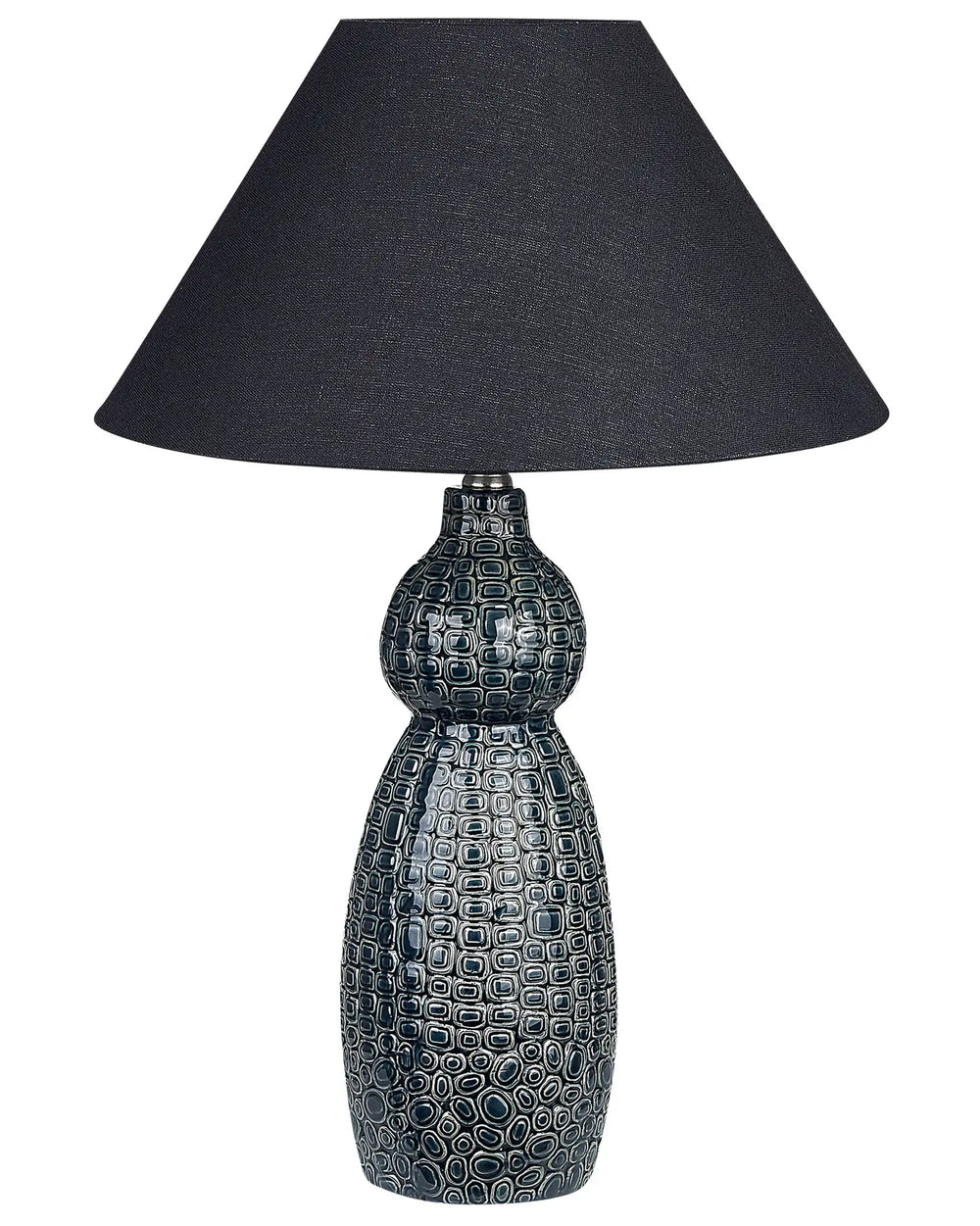Table Lamp Dark Blue Black Ceramic Base Fabric Shade Ambient Lighting Bedside Table Lamp Beliani