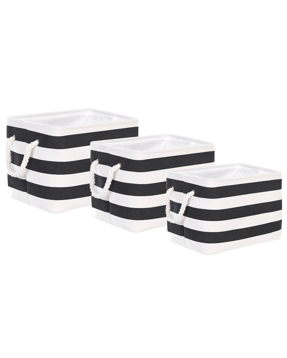 Set of 3 Storage Baskets Polyester Cotton Black and White Laundry Bins Organization with Handles Traditional Living Room Bedroom Beliani