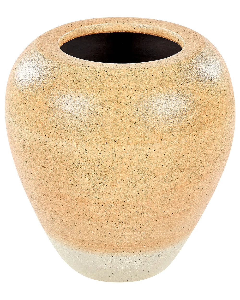 Decorative Vase Orange and Beige Terracotta 34 cm Handmade Painted Retro Vintage-Inspired Design Beliani