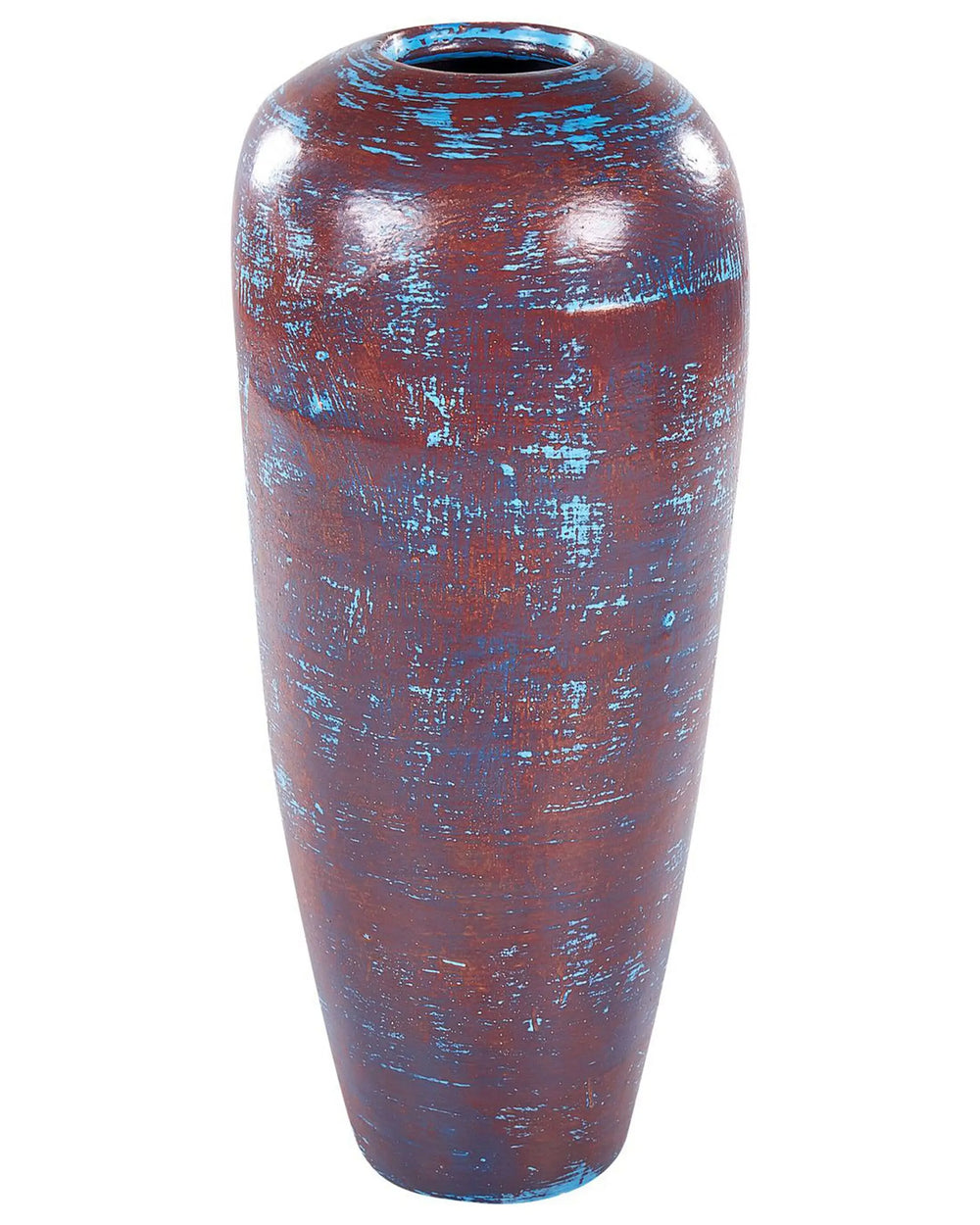 Decorative Vase Brown and BlueTerracotta Earthenware Faux Aged Distressed Finish Natural Style For Dried Flowers Beliani