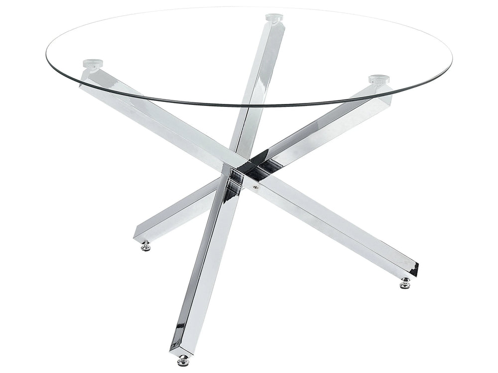 Dining Table Silver Metal Base Glass Top 110 cm Round Modern Beliani