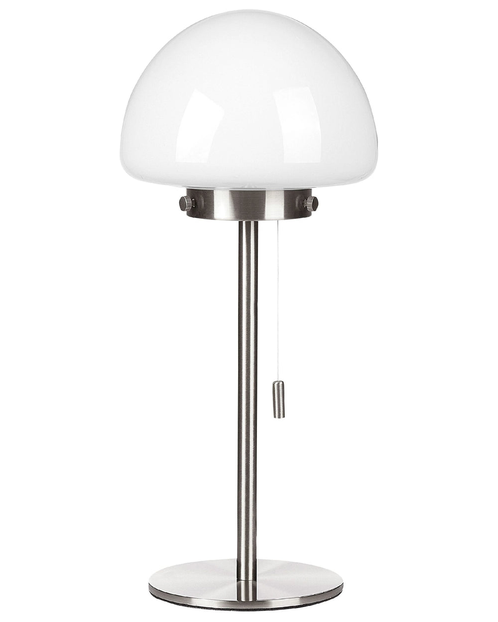 Table Lamp Silver Metal Base Glass Shade Pull Switch Minimalistic Style Home Office Light Beliani