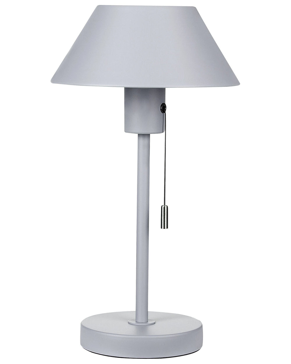 Table Lamp Light Grey Iron Cone Shade with Pull Switch Office Study Modern Beliani
