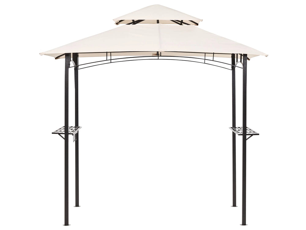 Gazebo Beige Fabric Black Steel 240 x148 cm Metal Frame Canopy with Hooks and Shelves Garden Pavilion Beliani is backordered and will ship as soon as it is back in stock.