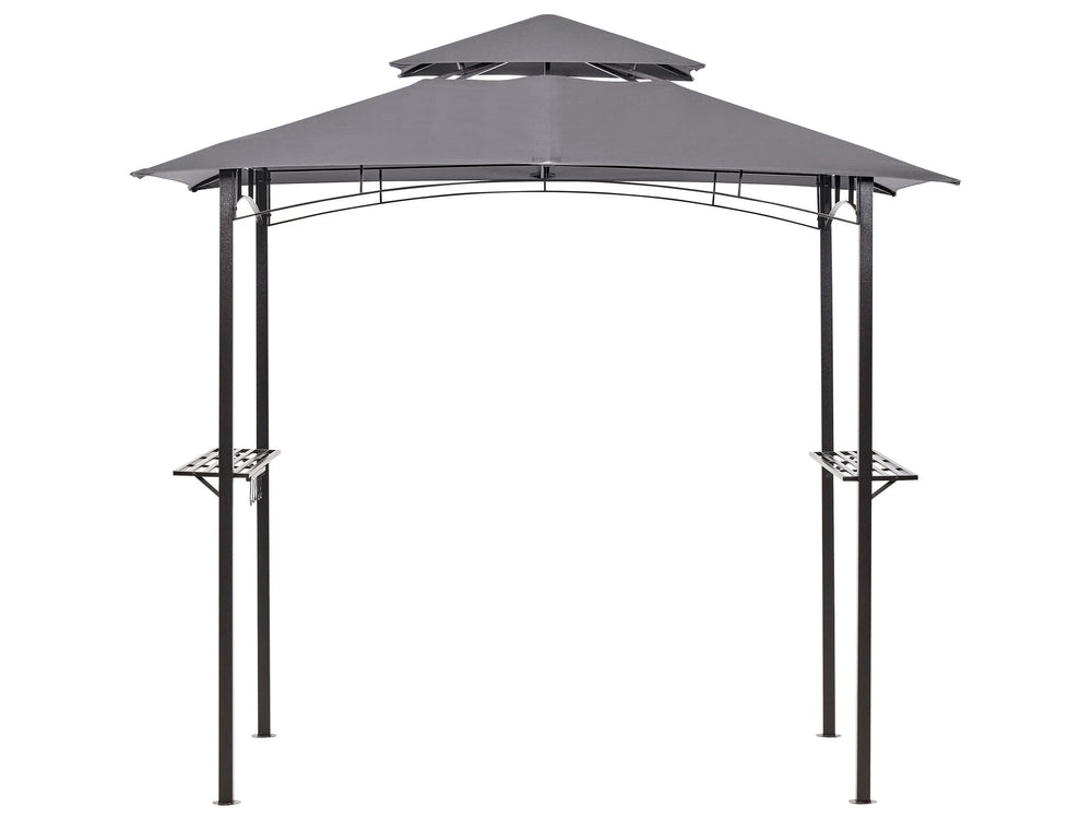 Gazebo Grey Fabric Black Steel 240 x 148 cm Metal Frame Canopy with Hooks and Shelves Garden Pavilion Beliani