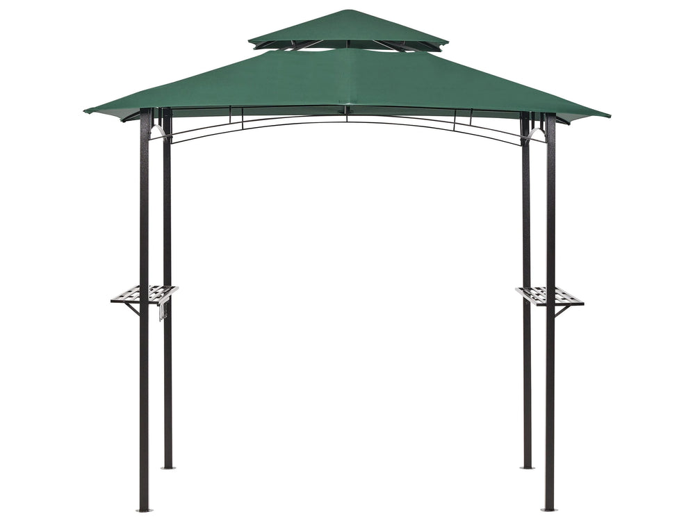Gazebo Dark Green Fabric Black Steel 240 x 148 cm Metal Frame Canopy with Hooks and Shelves Garden Pavilion Beliani is backordered and will ship as soon as it is back in stock.