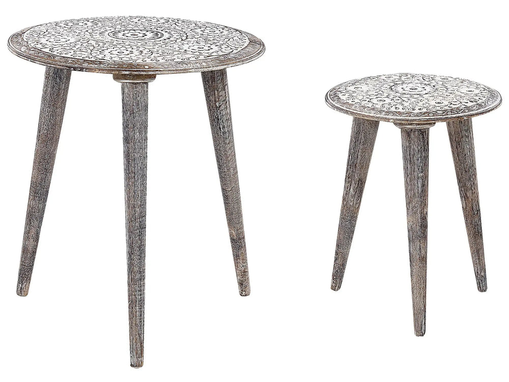 Side Table Grey and White with Carved Pattern Distressed Effect Living Room Hallway Vintage Beliani is backordered and will ship as soon as it is back in stock.