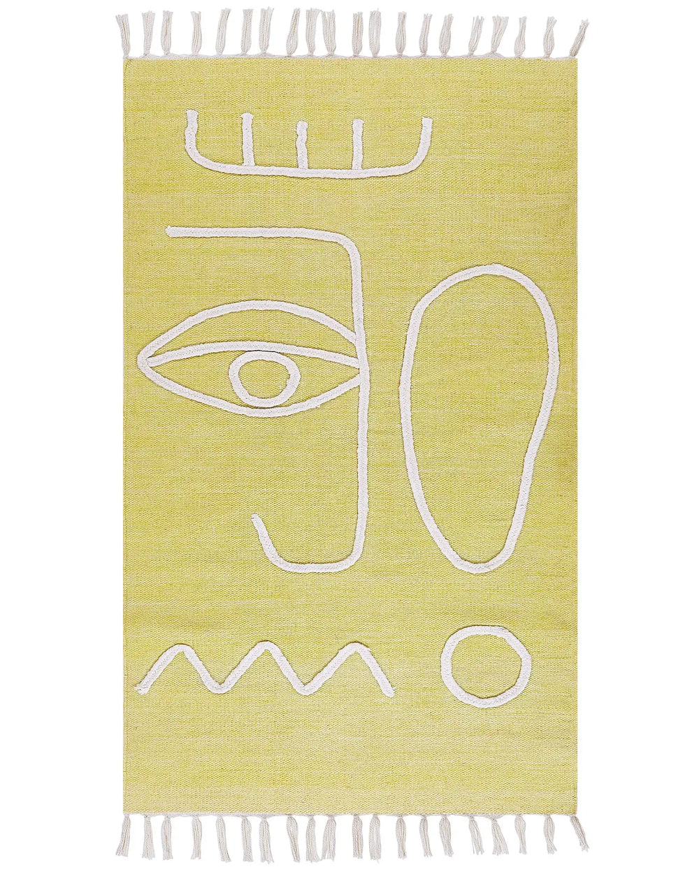Area Handwoven Rug Yellow Polyester 80 x 150 cm Rectangle Abstract Pattern with Tassels Rectangular Boho Indoor Outdoor Beliani is backordered and will ship as soon as it is back in stock.