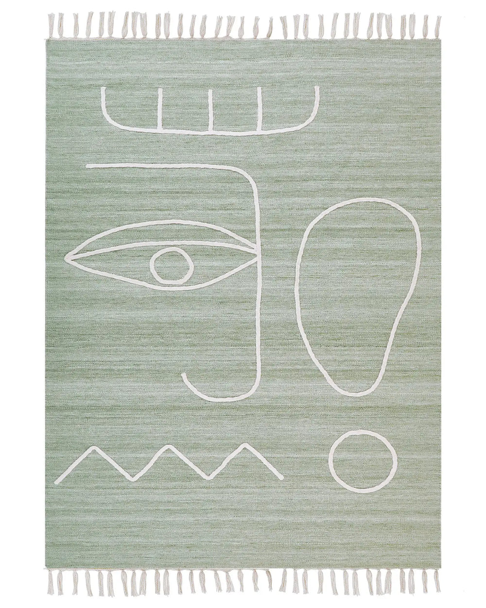 Area Handwoven Rug Light Green Polyester 140 x 200 cm Rectangle Abstract Pattern with Tassels Rectangular Boho Indoor Outdoor Beliani