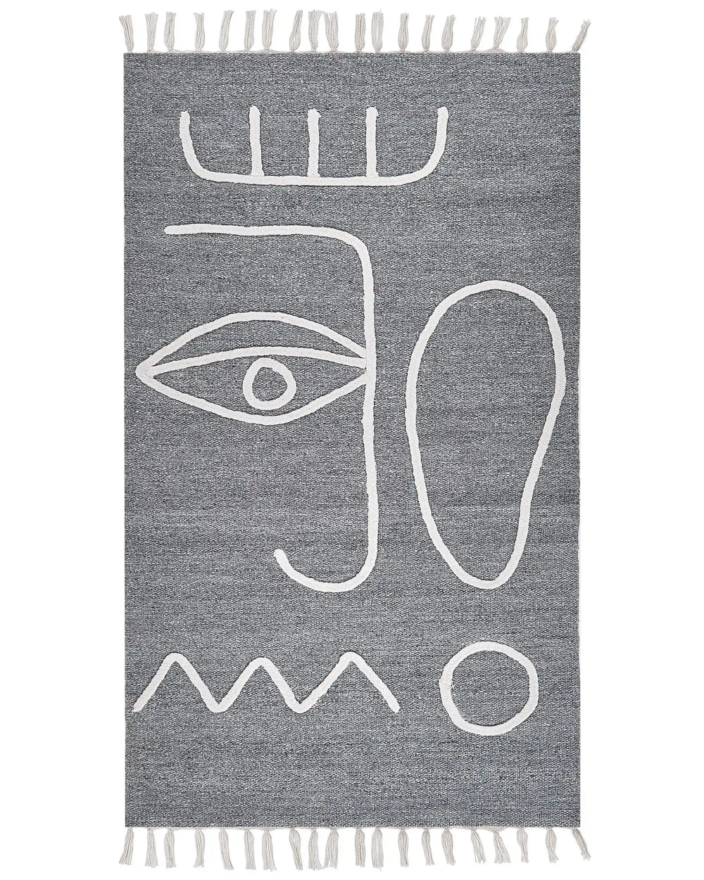 Area Handwoven Rug Grey Polyester 80 x 150 cm Rectangle Abstract Pattern with Tassels Rectangular Boho Indoor Outdoor Beliani