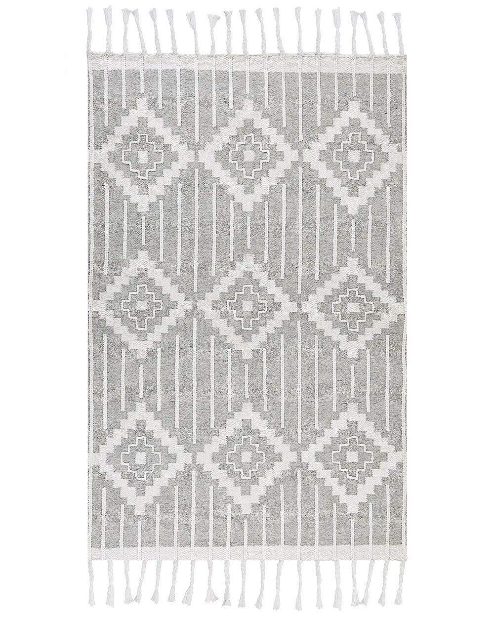 Area Rug Grey and White 140 x 200 cm Synthetic Material Decorative Tassels Indian Style Indoor Outdoor Beliani