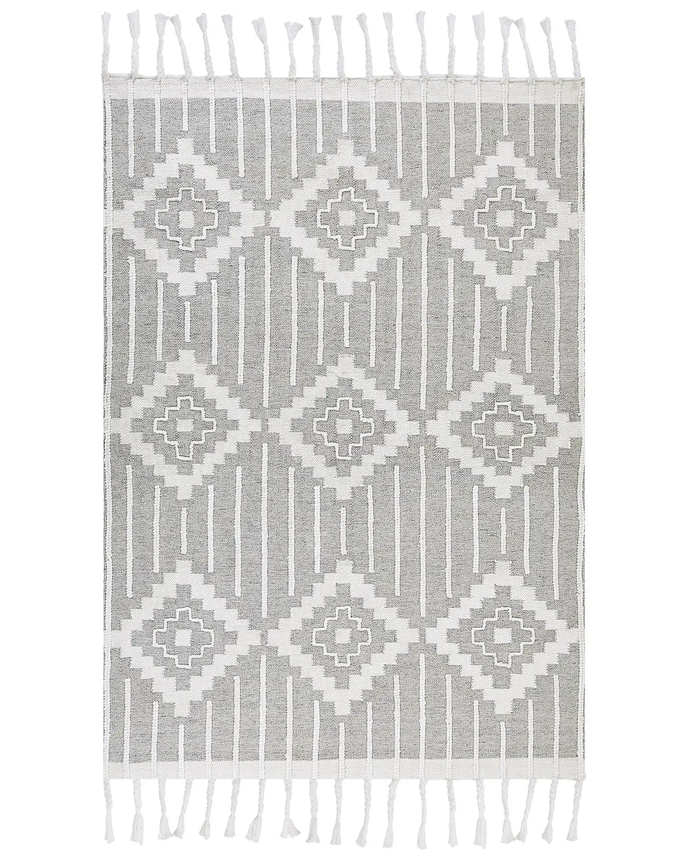 Area Rug Grey and White 160 x 230 cm Synthetic Material Decorative Tassels Indian Style Indoor Outdoor Beliani