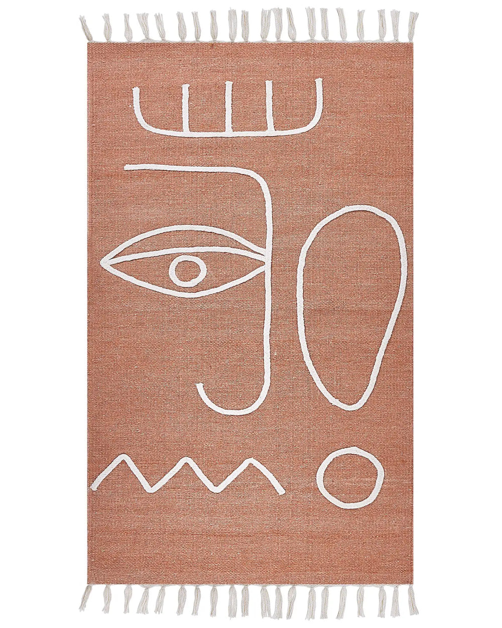 Area Handwoven Rug Light Red Polyester 80 x 150 cm Rectangle Abstract Pattern with Tassels Rectangular Boho Indoor Outdoor Beliani