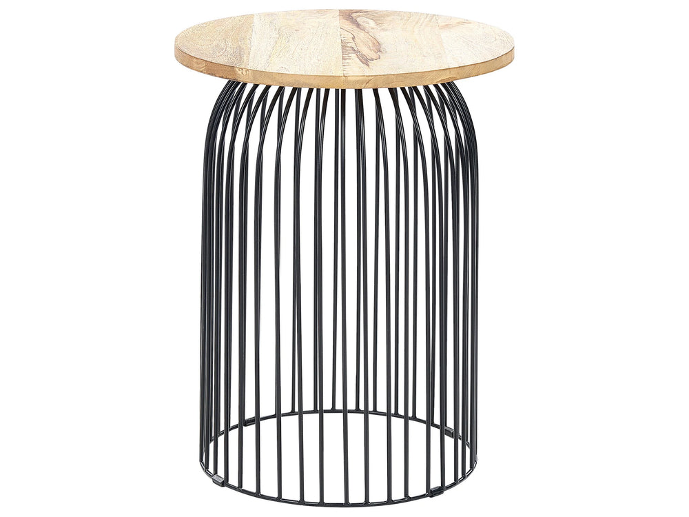 Side Table Light and Black Mango Wood and Aluminium 36 cm Decorative Coffee Side Table Small Living Room Furniture Beliani