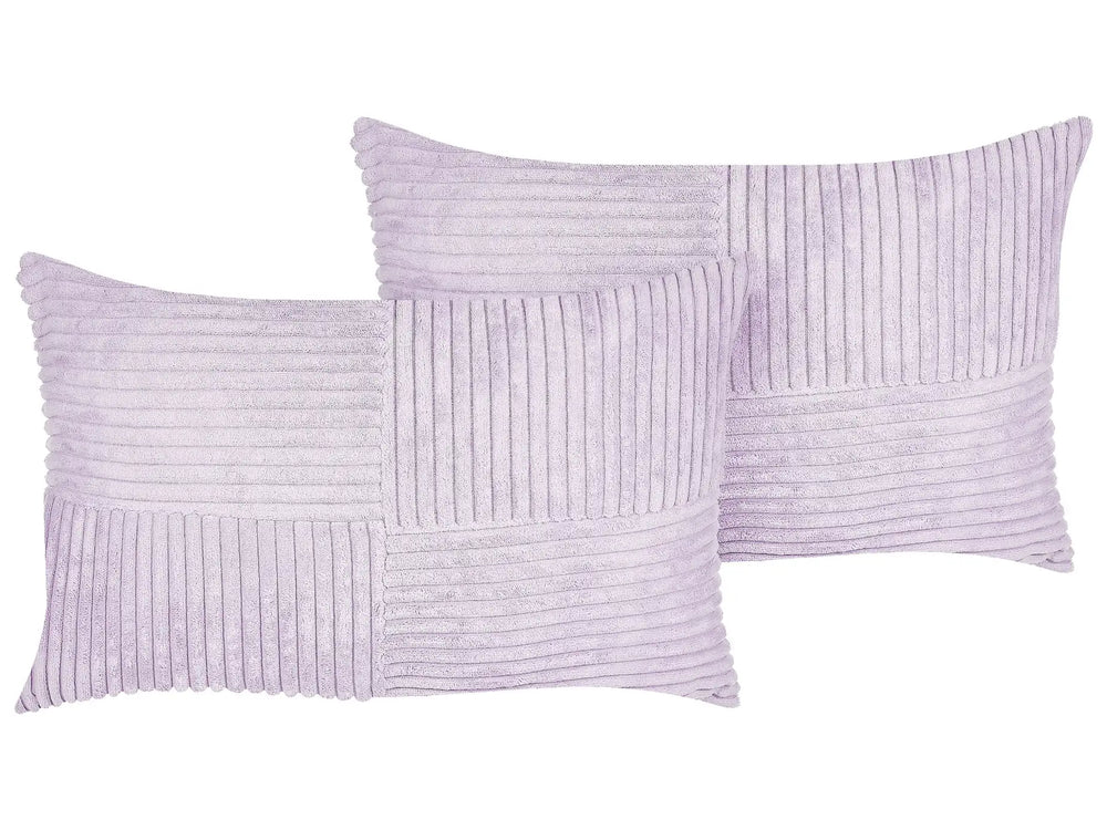 Set of 2 Decorative Pillows Violet Corduroy 50 x 30 cm Striped Pattern Modern Design Throw Cushions Beliani