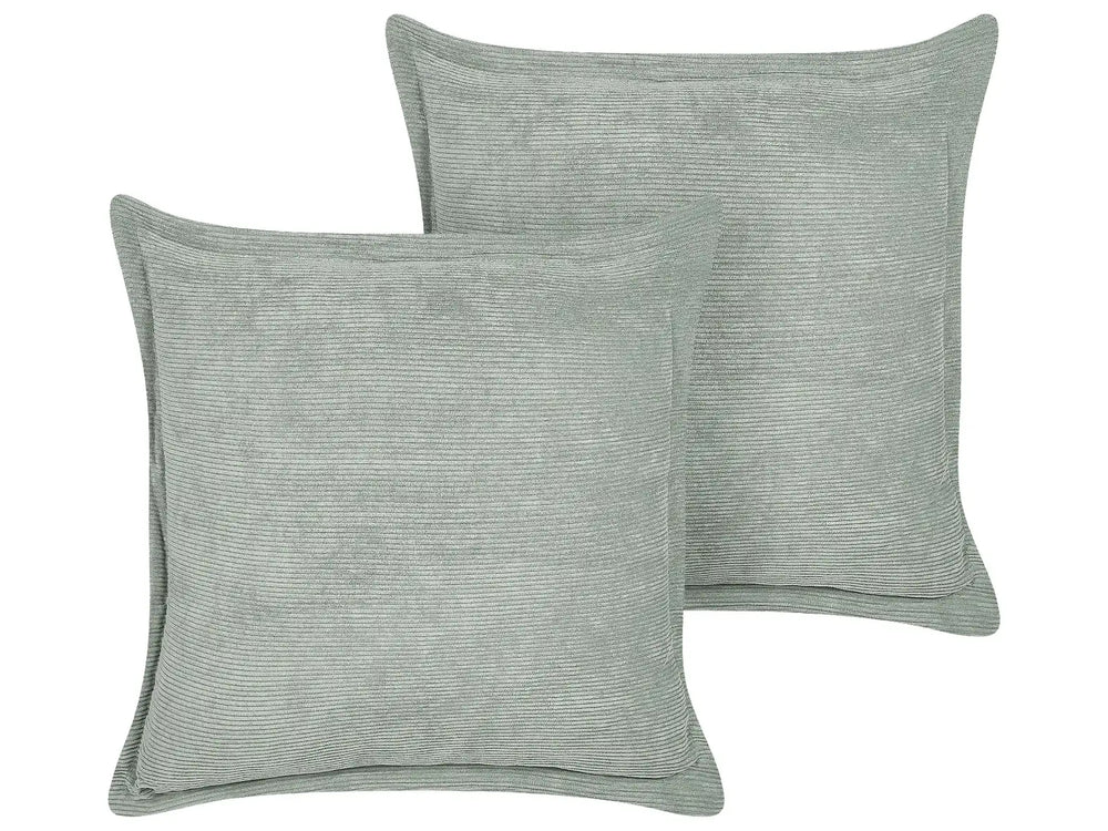 Set of 2 Light Green Decorative Pillows Corduroy 43 x 43 cm Modern Traditional Living Room Bedroom Cushions Beliani