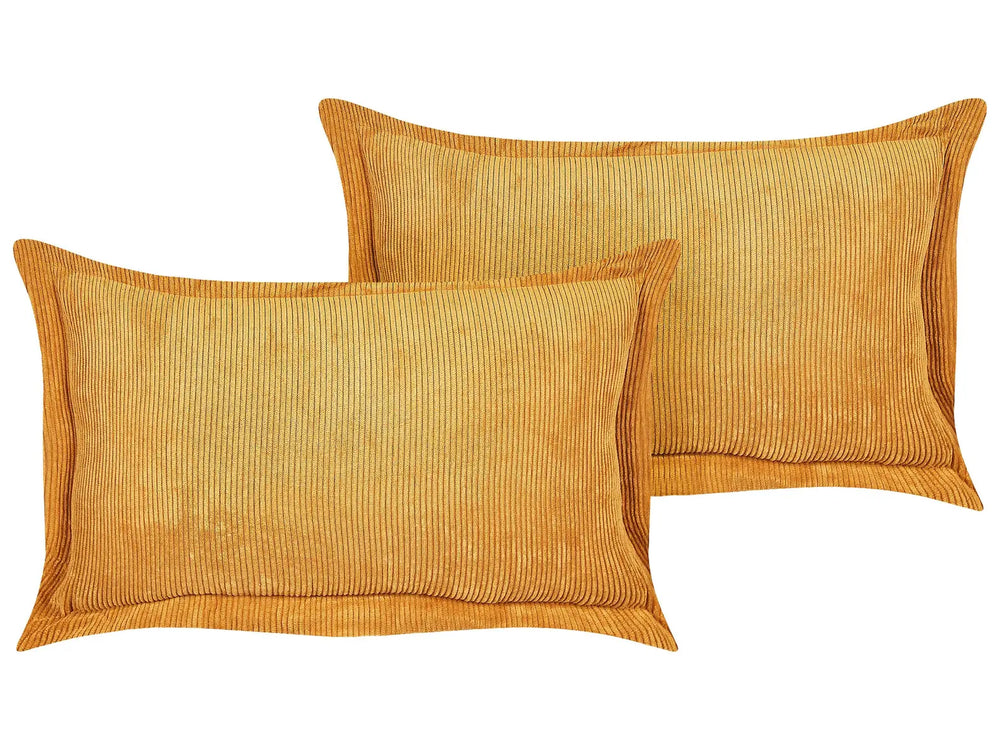 Set of 2 Yellow Decorative Pillows Corduroy 47 x 27 cm Modern Traditional Living Room Bedroom Cushions Beliani