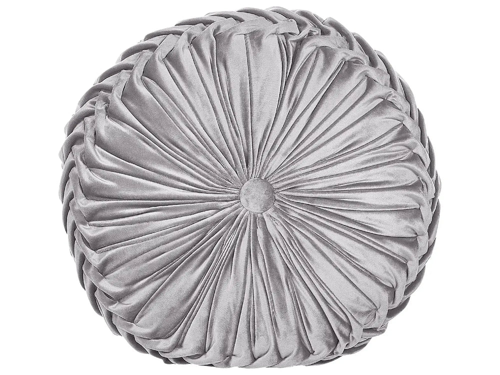 Decorative Cushion Grey Fabric with Pleats Round 40 cm Minimalist Modern Decor Accessories Beliani