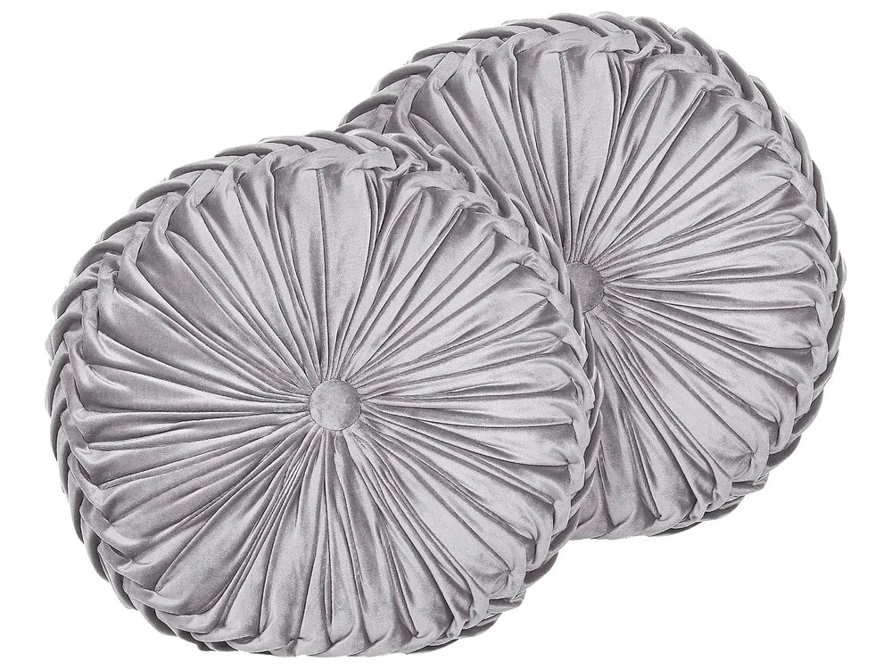 Set of 2 Decorative Cushions Grey Fabric with Pleats Round 40 cm Minimalist Modern Decor Accessories Beliani