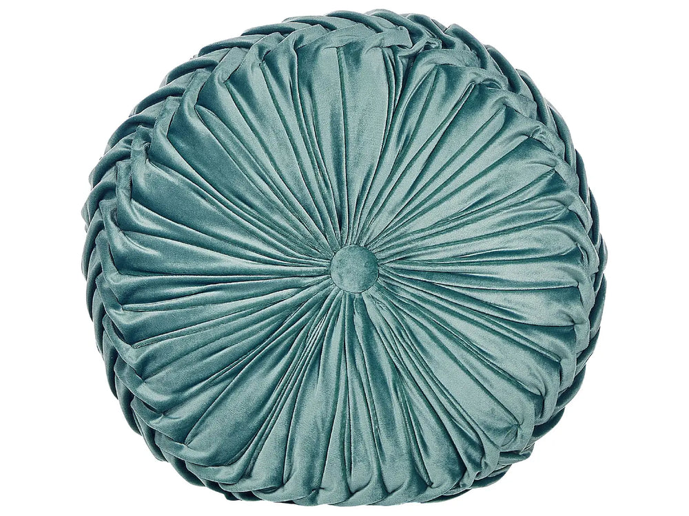 Decorative Cushion Teal Fabric with Pleats Round 40 cm Minimalist Modern Decor Accessories Beliani