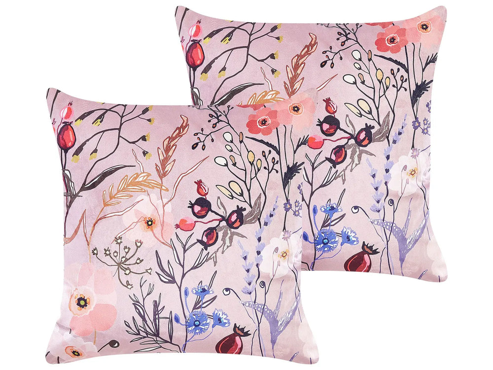 Set of 2 Pink Decorative Pillows Polyester 45 x 45 cm Velvet Flower Pattern Modern Traditional Living Room Bedroom Cushions Beliani