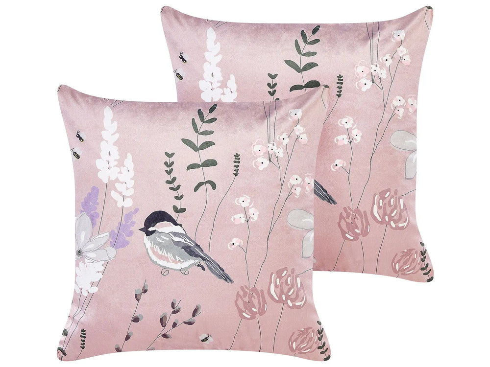Set of 2 Pink Decorative Pillows Polyester 45 x 45 cm Flower Animal Pattern Modern Traditional Living Room Bedroom Cushions Beliani
