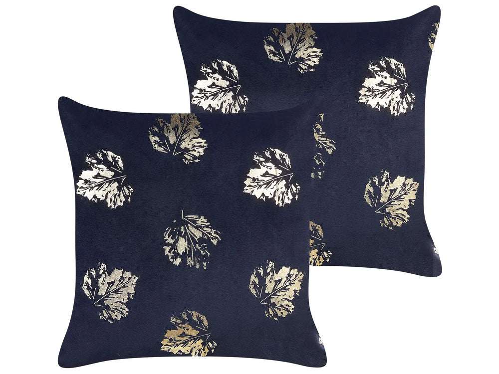Set of 2 Decorative Cushions Black Velvet Leaf Pattern 45 x 45 cm Gold Foil Print Decor Accessories Beliani