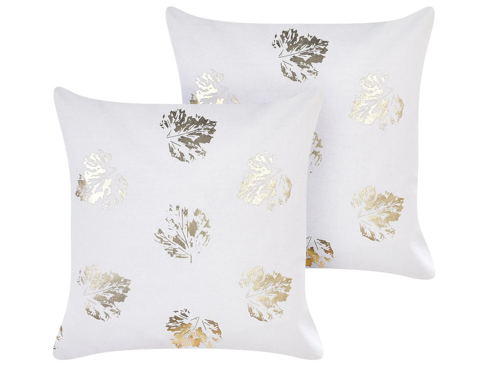 Set of 2 Decorative Cushions White Velvet Leaf Pattern 45 x 45 cm Gold Foil Print Decor Accessories Beliani