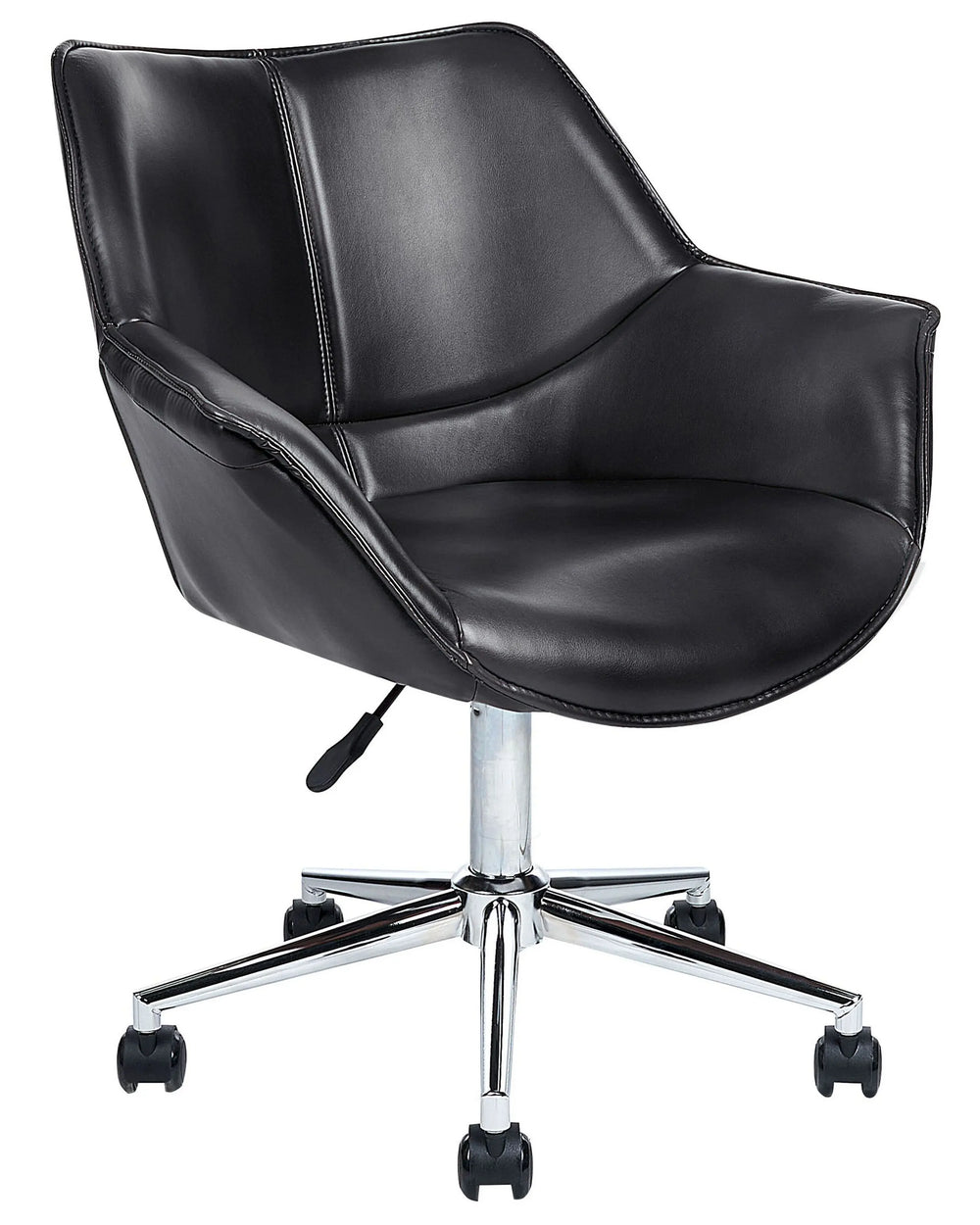 Office Swivel Chair Black Faux Leather Height Adjustable Elegant Beliani