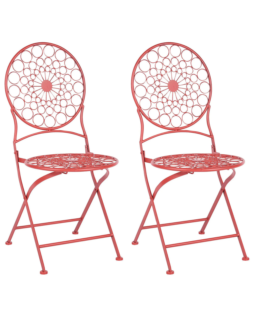 Set of 2 Garden Bistro Chairs Red Iron Foldable Outdoor UV Rust Resistance French Retro Style Beliani