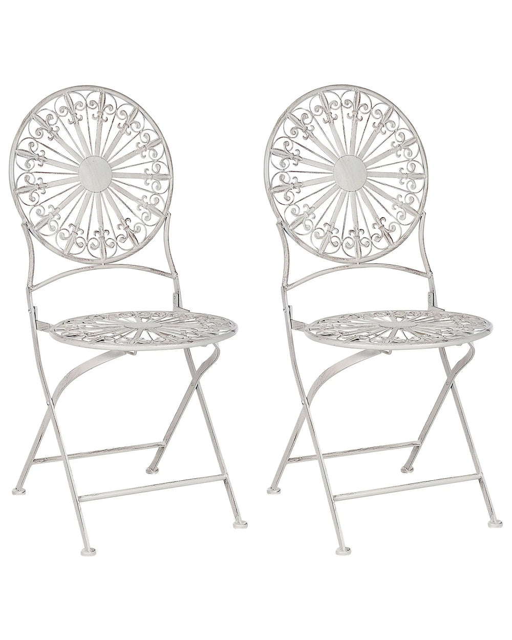 Set of 2 Garden Bistro Chairs White Iron Foldable Outdoor Distressed Effect UV Rust Resistance French Retro Style Beliani