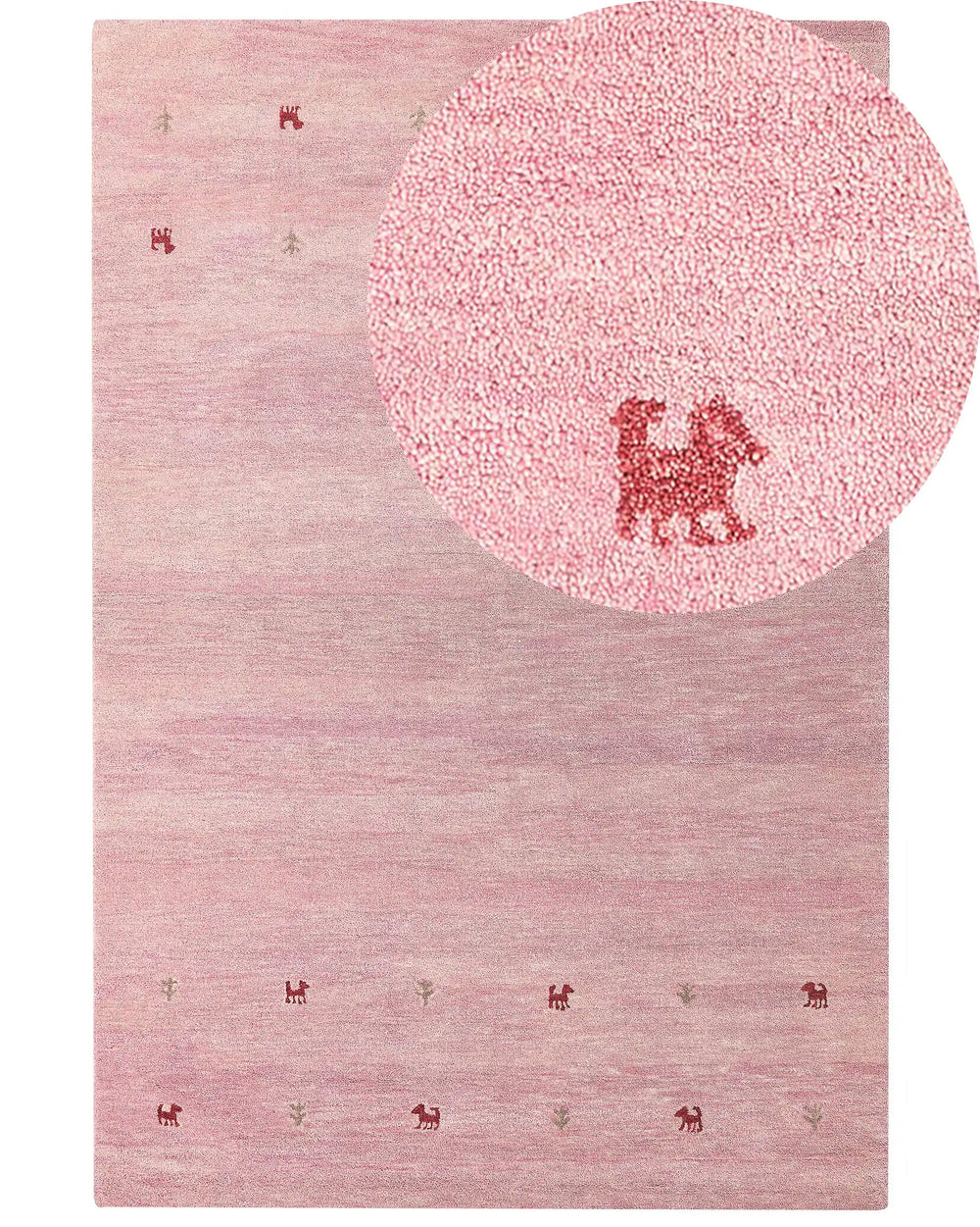 Wool Area Rug Pink 200 x 300 cm Hand Tufted Western Motif Rustic Modern Design Beliani