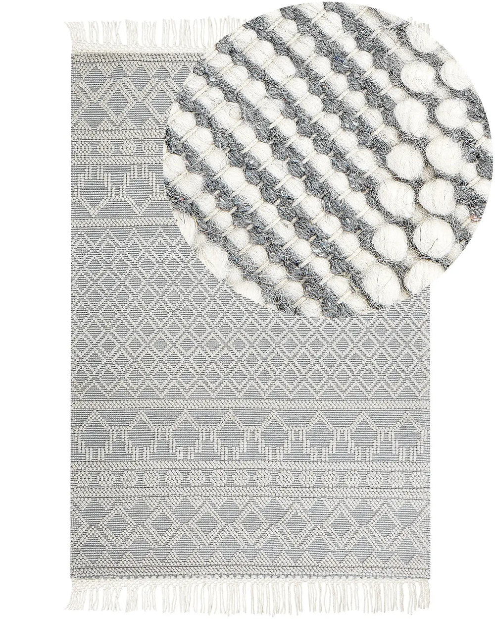 Area Rug Beige and Grey Wool 160 x 230 cm Geometric Pattern with Tassels Hand Woven Living Room Bedroom Boho Modern Beliani
