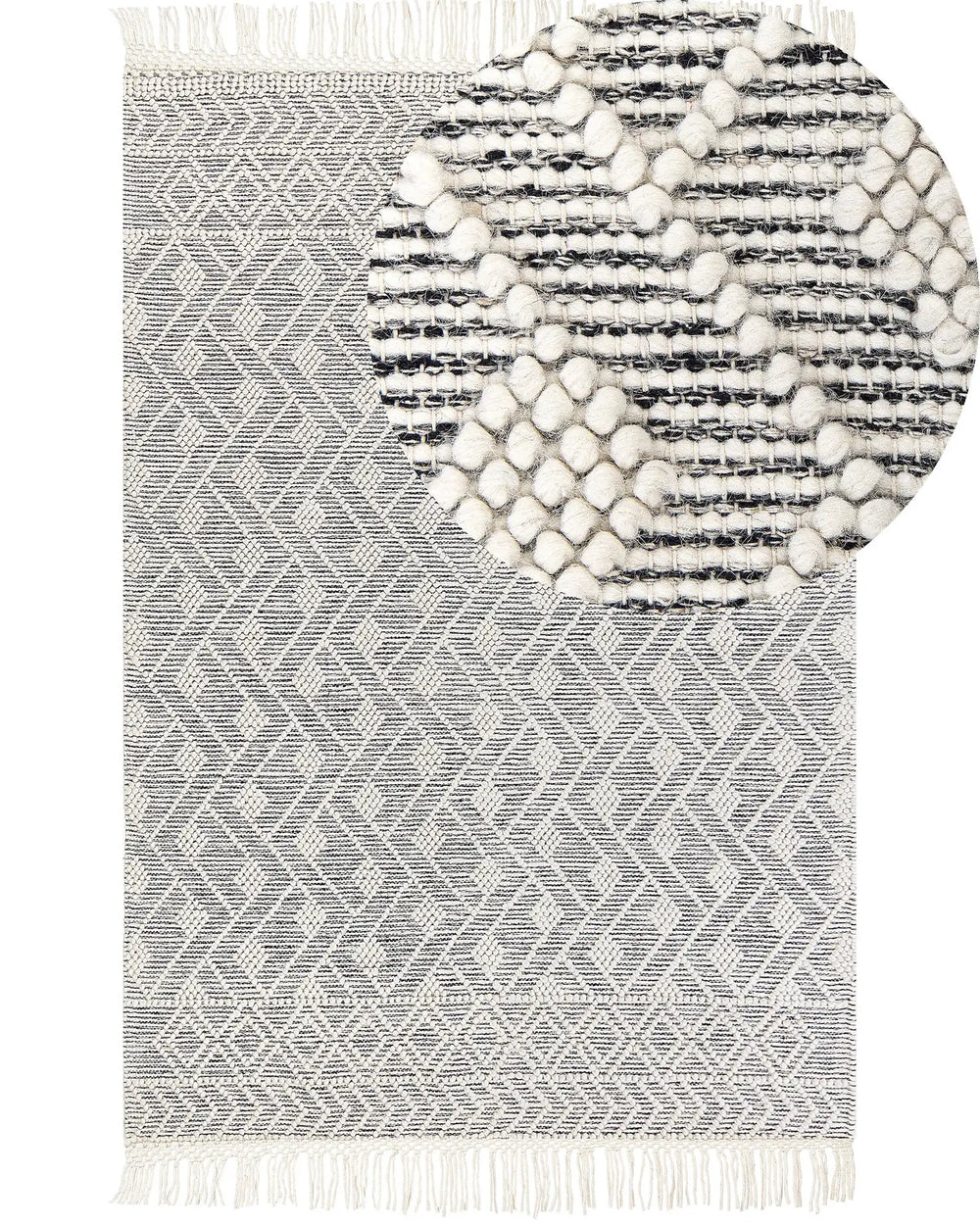 Area Rug Black and White Wool Cotton 160 x 230 cm Hand Woven Flat Weave with Tassels Geometric Pattern Beliani