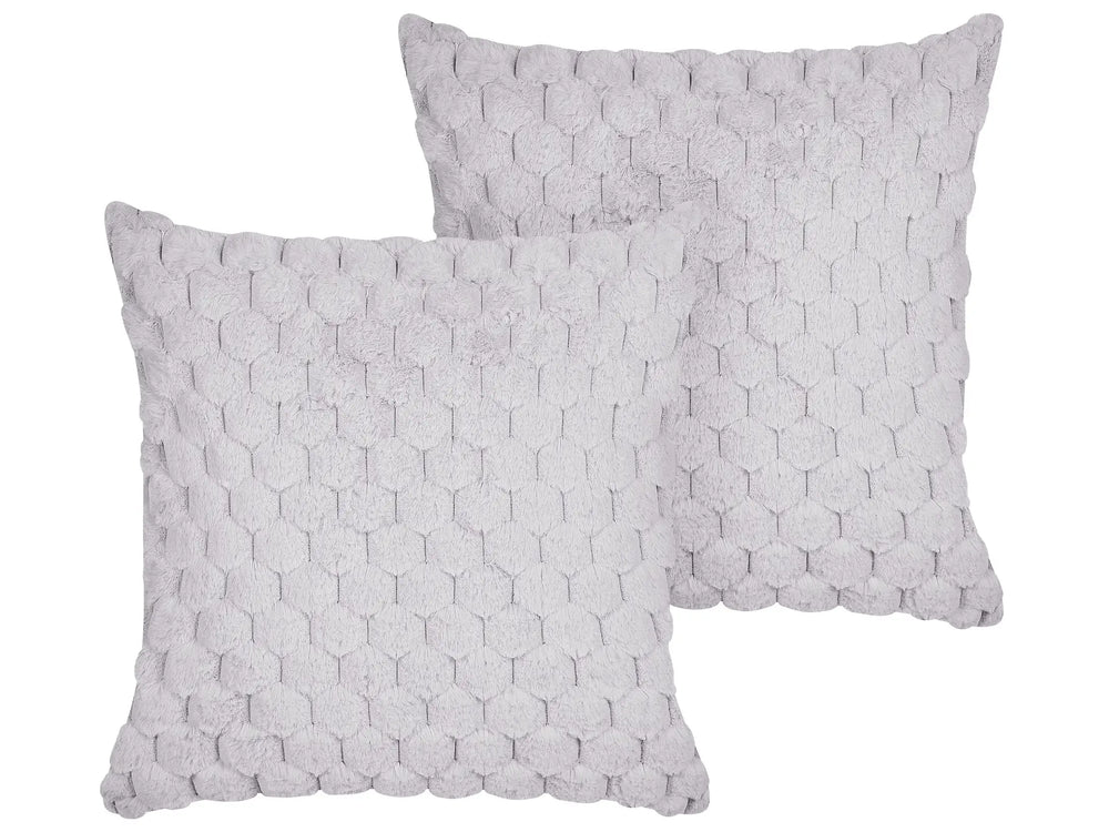 Set of 2 Scatter Cushions Light Grey Faux Fur 43 x 43 cm Fluffy Throw Pillow Honeycomb Geometric Pattern Removable Cover with Filling Beliani