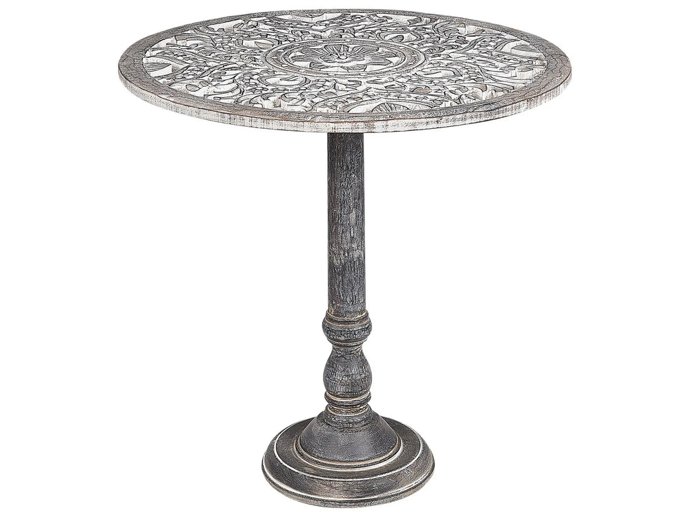 Side Table Grey Mango Wood MDF 61 cm Decorative Coffee Side Table Small Living Room Furniture Oriental Design Beliani