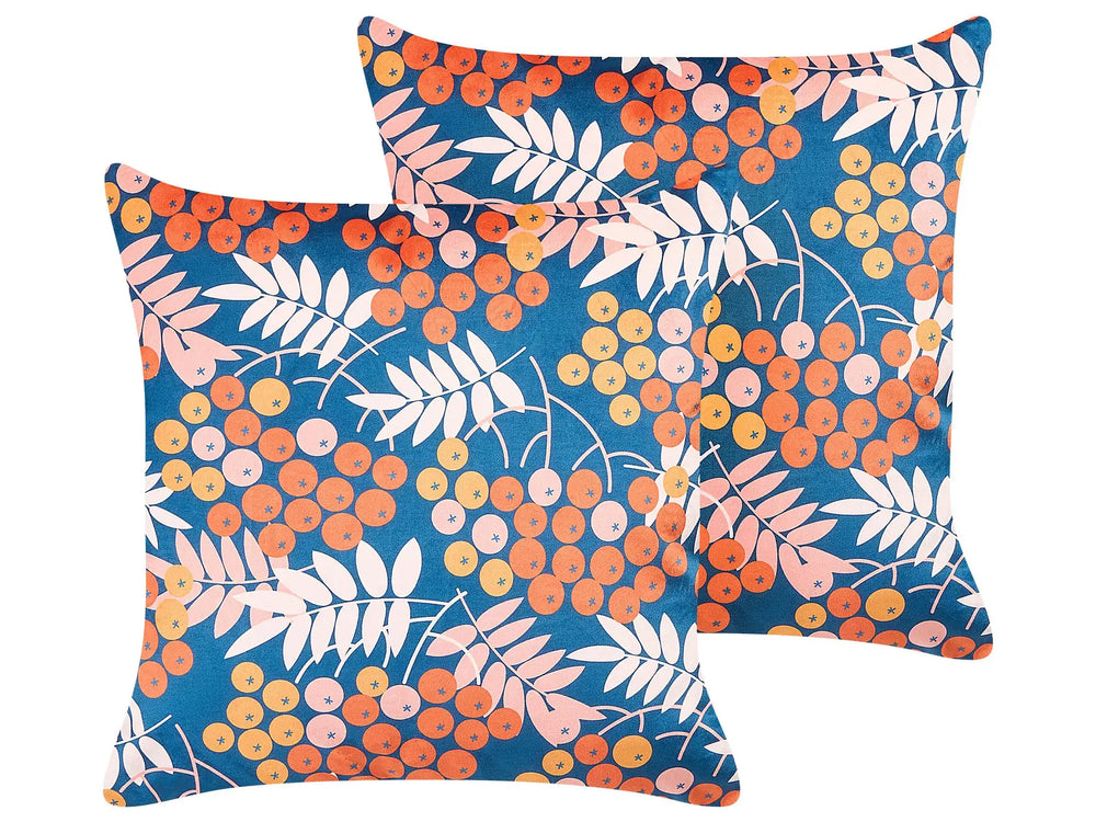 Set of 2 Decorative Cushions Multicolour Velvet 45 x 45 cm with Plant Motif Modern Traditional Living Room Bedroom Beliani