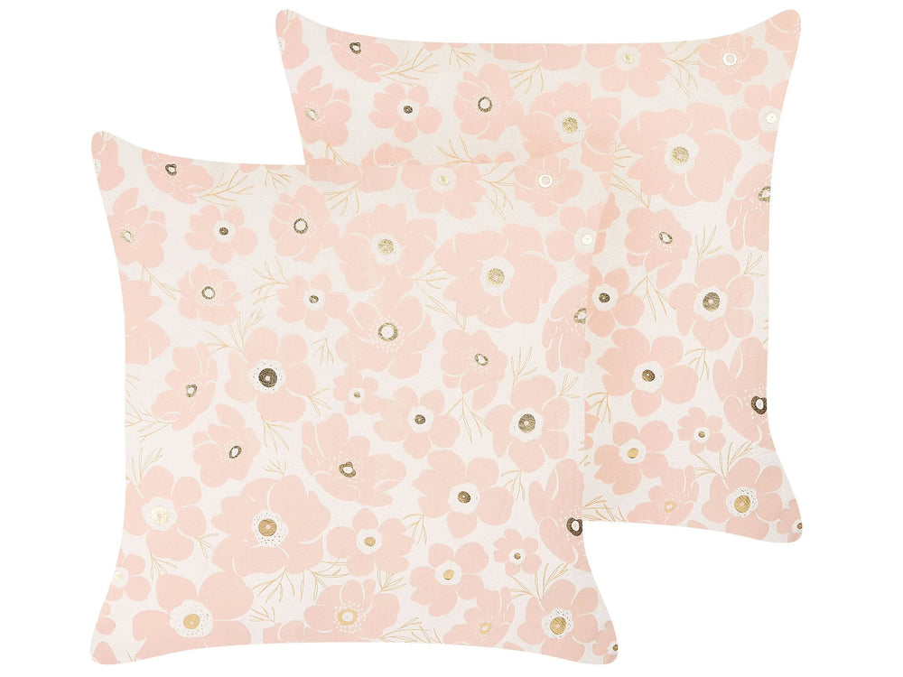 Set of 2 Scatter Cushions Beige and Pink Velvet 45 x 45 cm Throw Pillow Floral Pattern Flower Motif Removable Cover with Filling Beliani